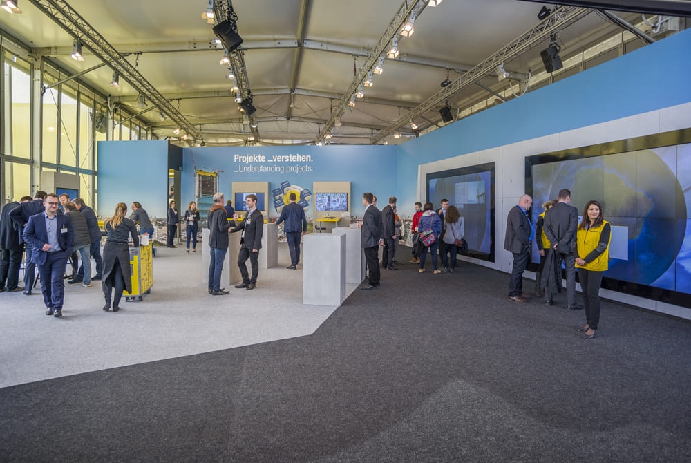Doka校园 博览会bauma(建筑机械展)规模3900平方米地点慕尼黑会展中心荣誉展览设计奖 Doka 多卡选择了一个开放而引人入胜的校园概念作为其在bauma(建筑机械展)上亮相的展台。ShopConsult公司与Doka和atelier damböck合作,公司开发了一个概念,拥有一个可自由进出的校园和四周分门别类的帐篷,它们具有不同的功能和主题区域 校园庭院配备了长椅,可供休息和完美地观看相对两侧的交替演示。入口处的大型LED屏幕用于报告新闻和亮点。 该展台荣获“双层展览”类别的展览设计奖!